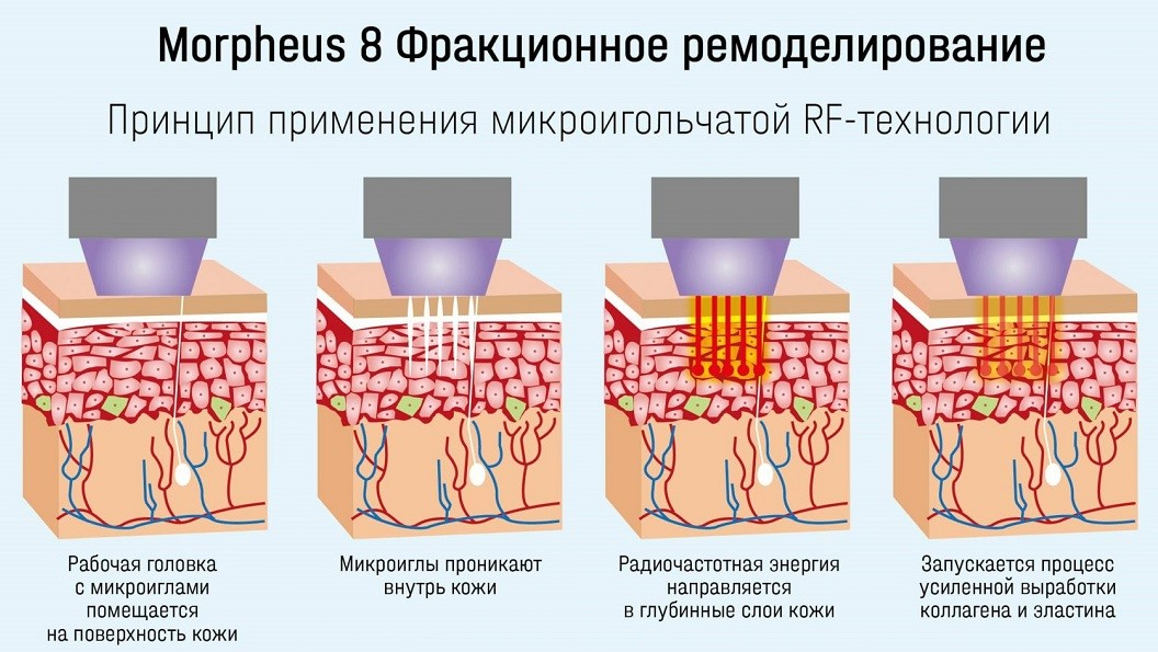 RF лифтинг Morheus 8 имеет короткий период восстановления. В течение 3 - 7 дней могут быть заметны крошечные следы микроигл, которые не помешают вам вести привычный образ жизни и не заставят выпадать из социума.